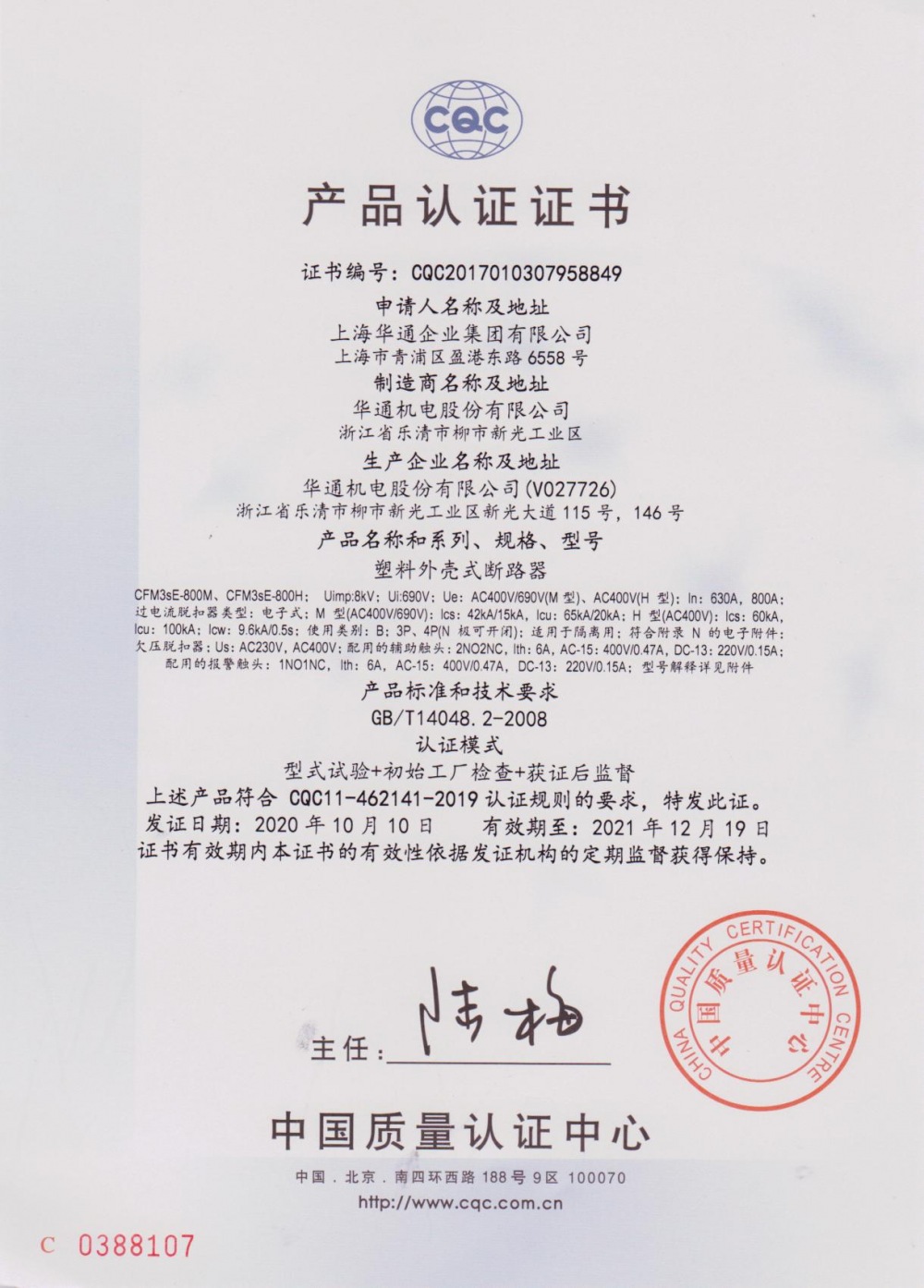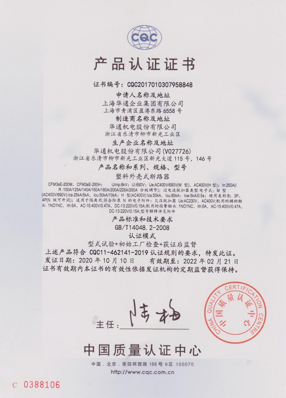 符合標準:GB/T14048.2、GB/T14092.3、GB/T20645、IEC 60947-2。